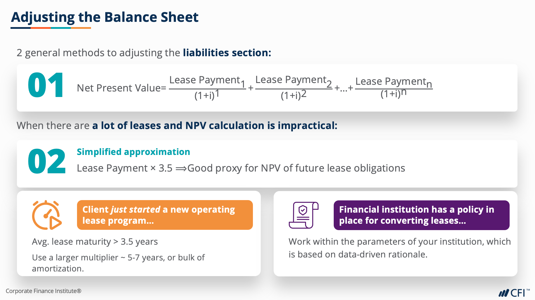 Veremos 8 criterios críticos para analizar y suscribir una transacción y cómo las diferentes estructuras de préstamos afectan estos criterios. Después, analizaremos un cliente de ejemplo con un arrendamiento operativo y ajustaremos los estados financieros para calcular los índices de préstamos ajustados. Por último, el curso cubrirá conceptos adicionales de venta con arrendamiento posterior, financiamiento de equipos nuevos y usados y manejo de avances no estándar.